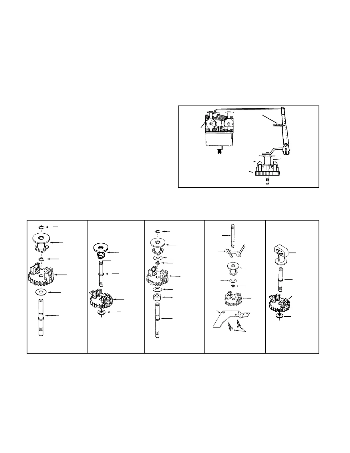 engine’s camshaft gear. Changes in engine R.P.M. cause the governor to move the solid link that is connected from