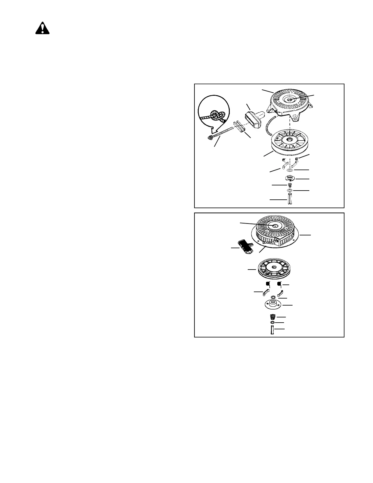 CAUTION: THIS REWIND SPRING IS NOT SECURED IN A CANISTER. PULLEY BOSSES HOLD THE