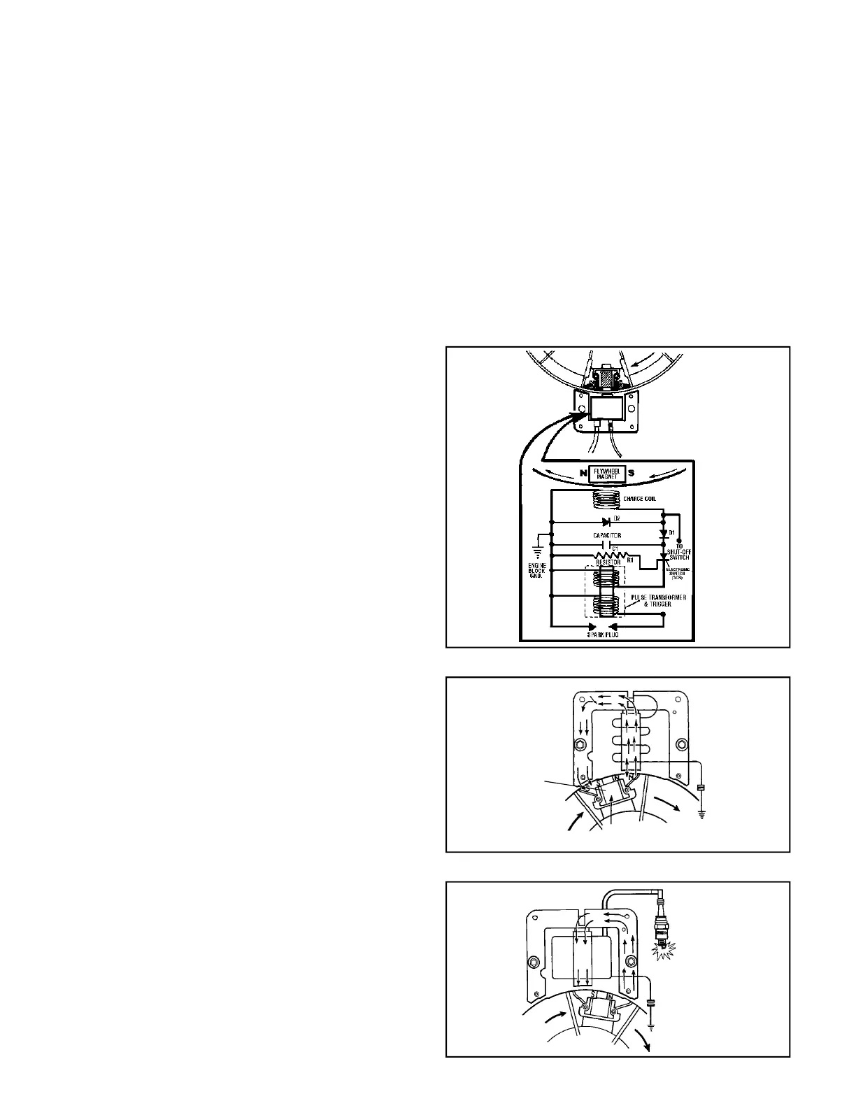 The solid state ignition system consists of a flywheel magnet and key, charge coil, capacitor, a silicon controlled