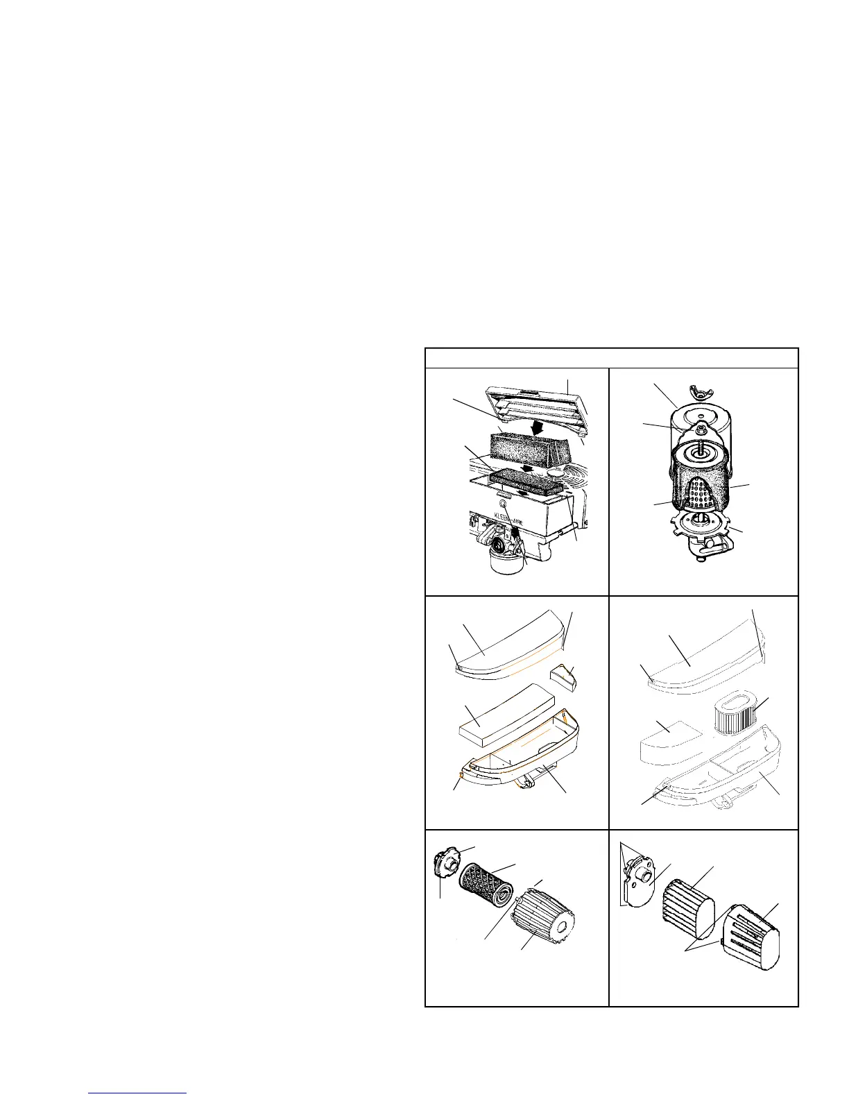 d. Install foam filter(s) and paper filter (if so equipped) in body.