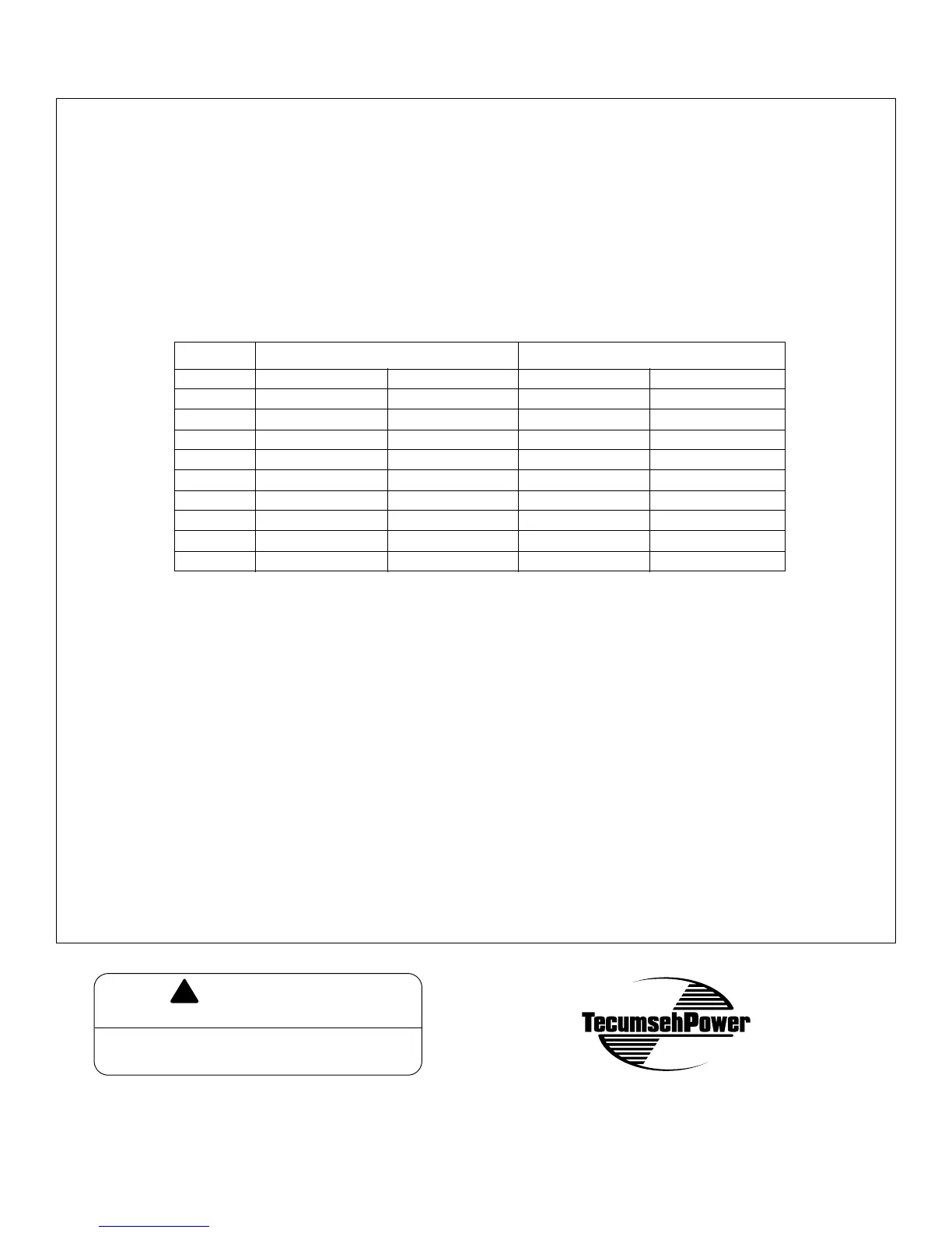 PERFORMED BY A TECUMSEHPOWER AUTHORIZED SERVICE OUTLET. Warranty service can be arranged by contacting a TecumsehPower Authorized Service