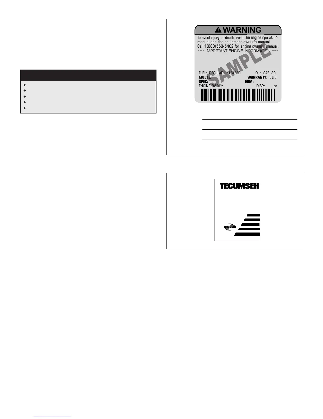 Handbook is available from your Authorized Tecumseh