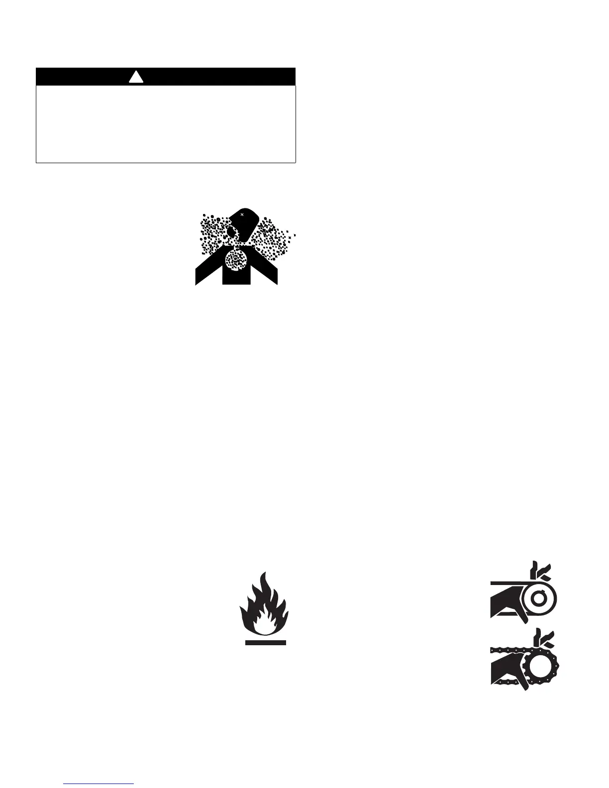 • NEVER fill fuel tank indoors. Fill fuel tank outdoors