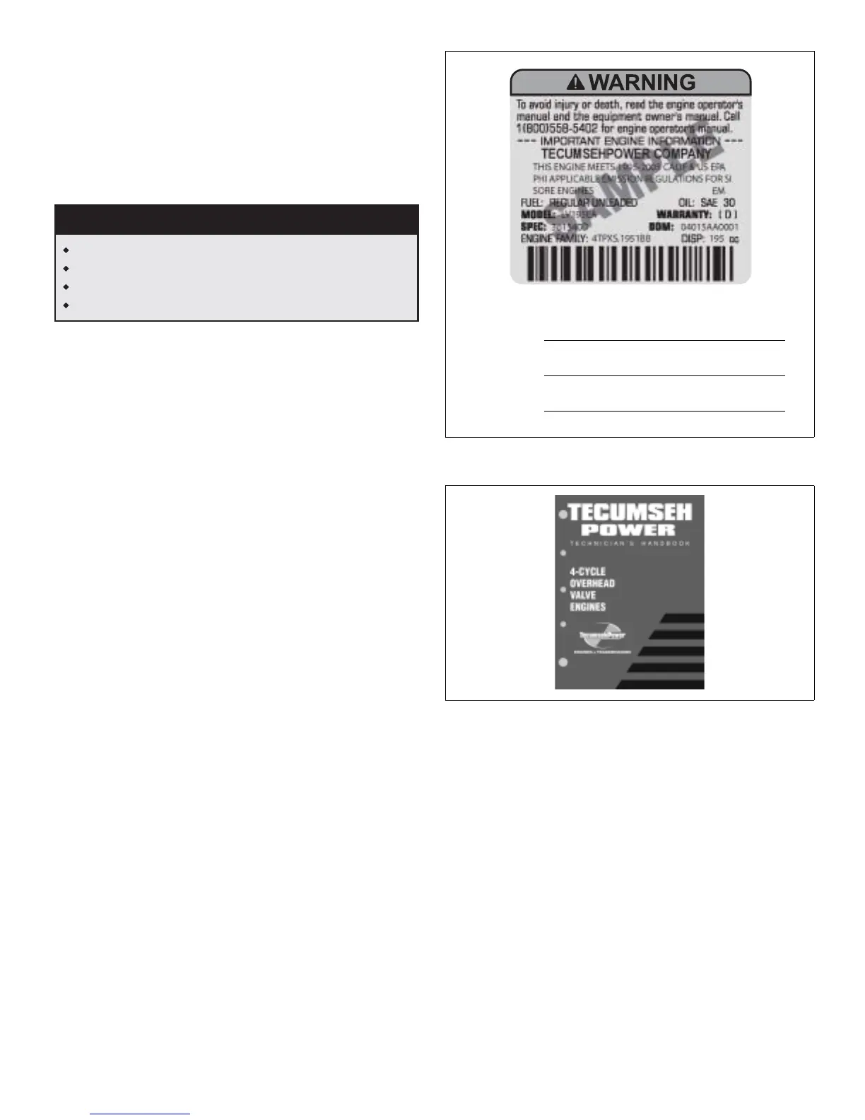 TecumsehPower Company at 1-800-558-5402 for