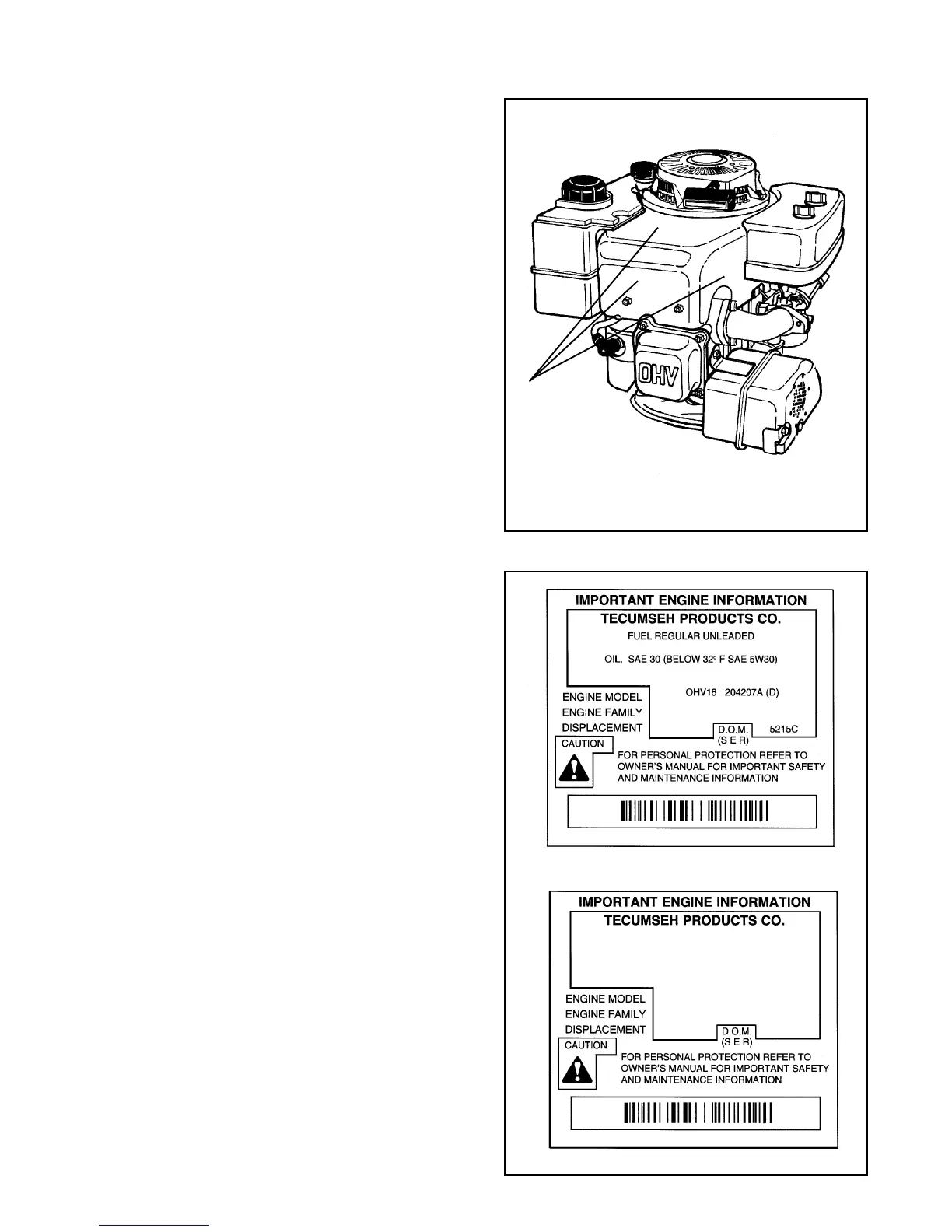 engine identification decal also provides the applicable