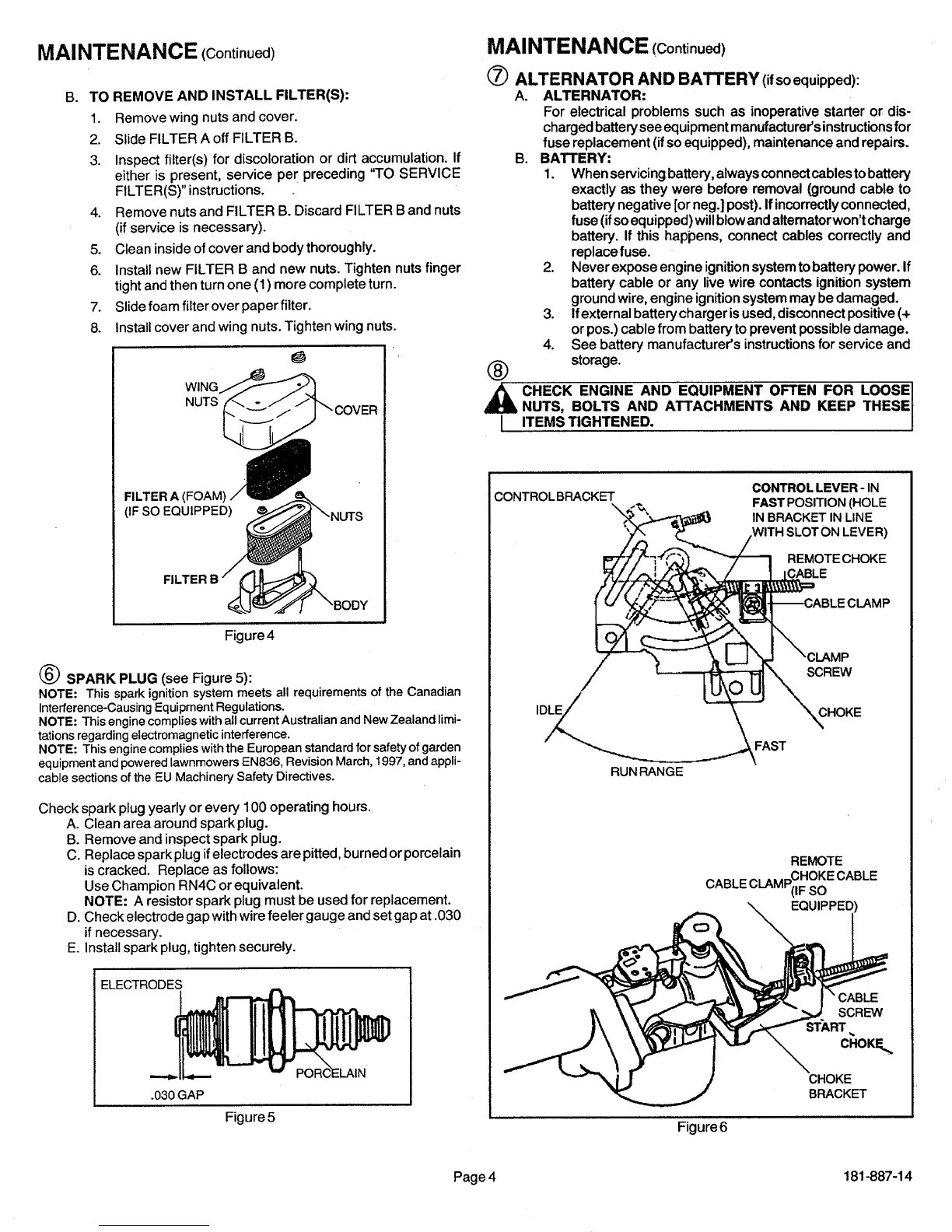 Tecumseh OHV135 - Maintenance Procedures; Spark Plug Service