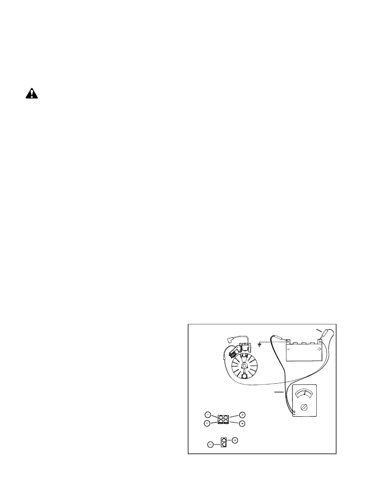 Tecumseh dealer or a parts manual to identify the charging system. To make many of the tests it is necessary to run the