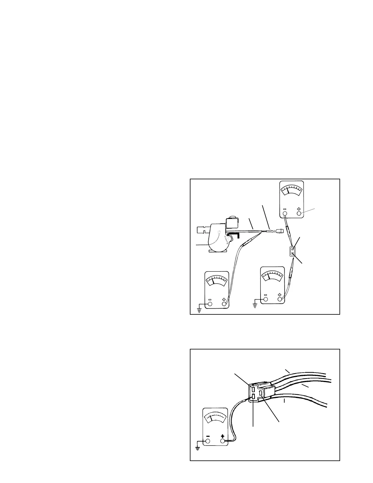 TEST NO. 2 - Connect the positive probe of meter to red output lead. Connect the negative probe of meter to both A.C.