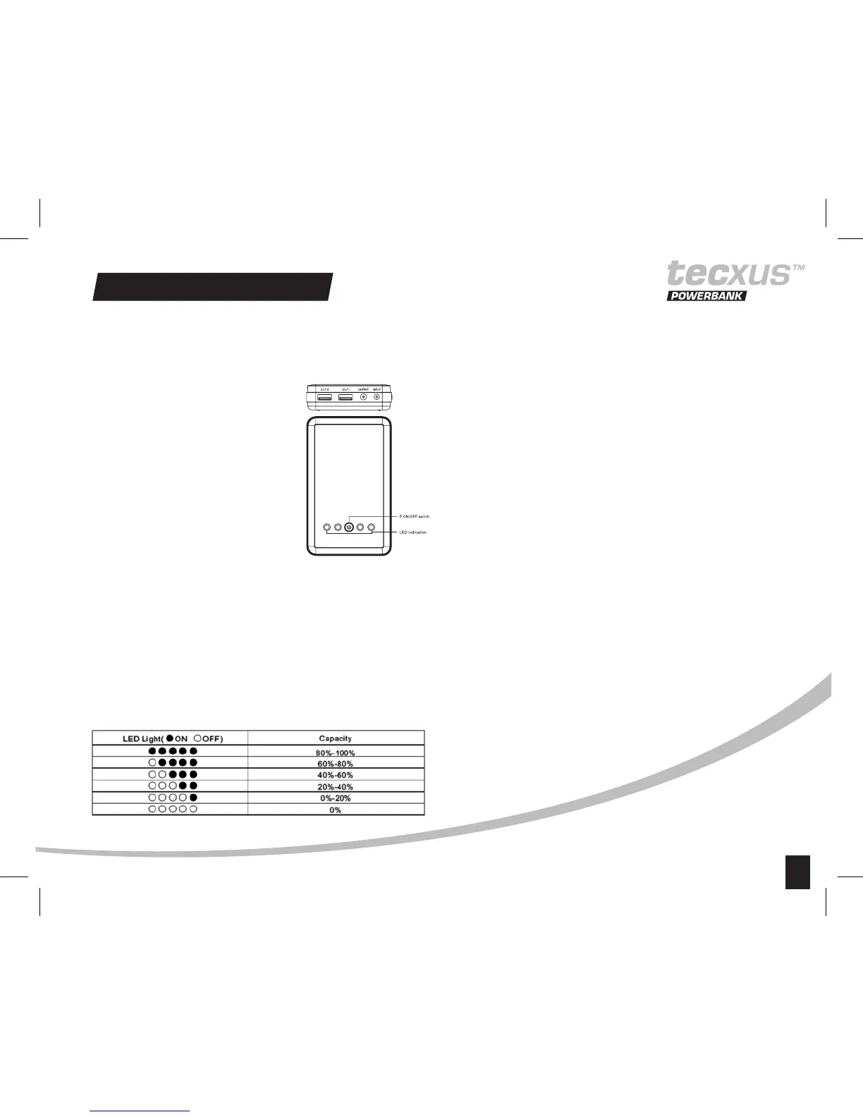 感谢您购买Tecxus TP10000万用移动电源。为了能获得最佳性能状态和最高