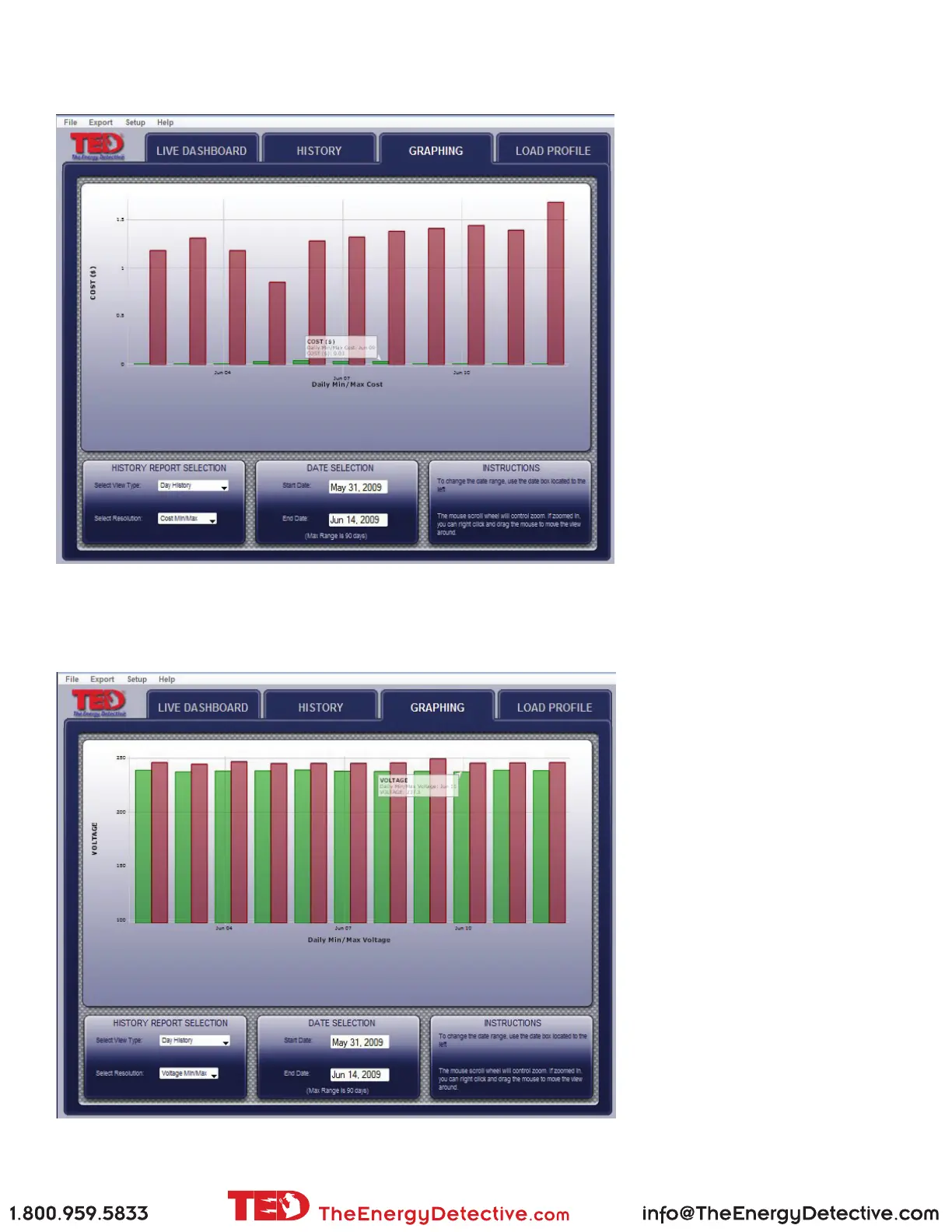 Sample - DAY graph of Minimum and Maximum of Voltage - range 11 days