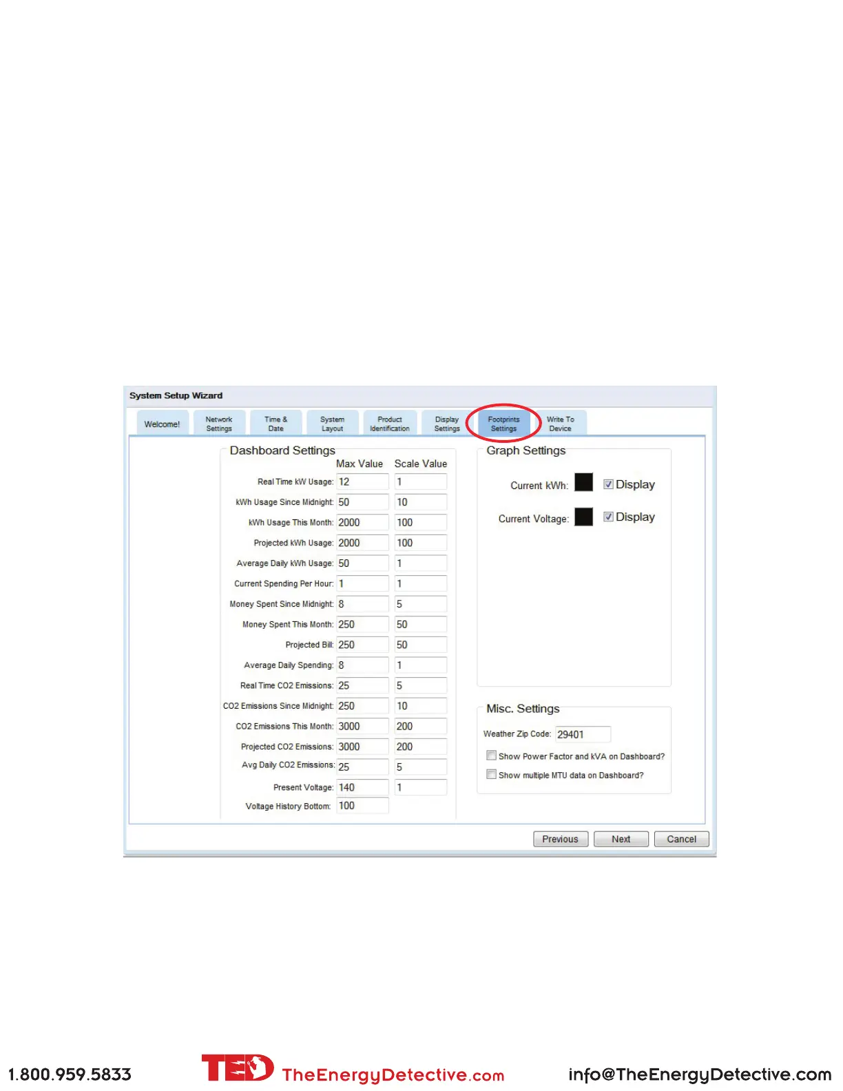 Haga clic en “Show Power Factor” (Muestra el factor del poder) y KWA si quiere que estos valores se