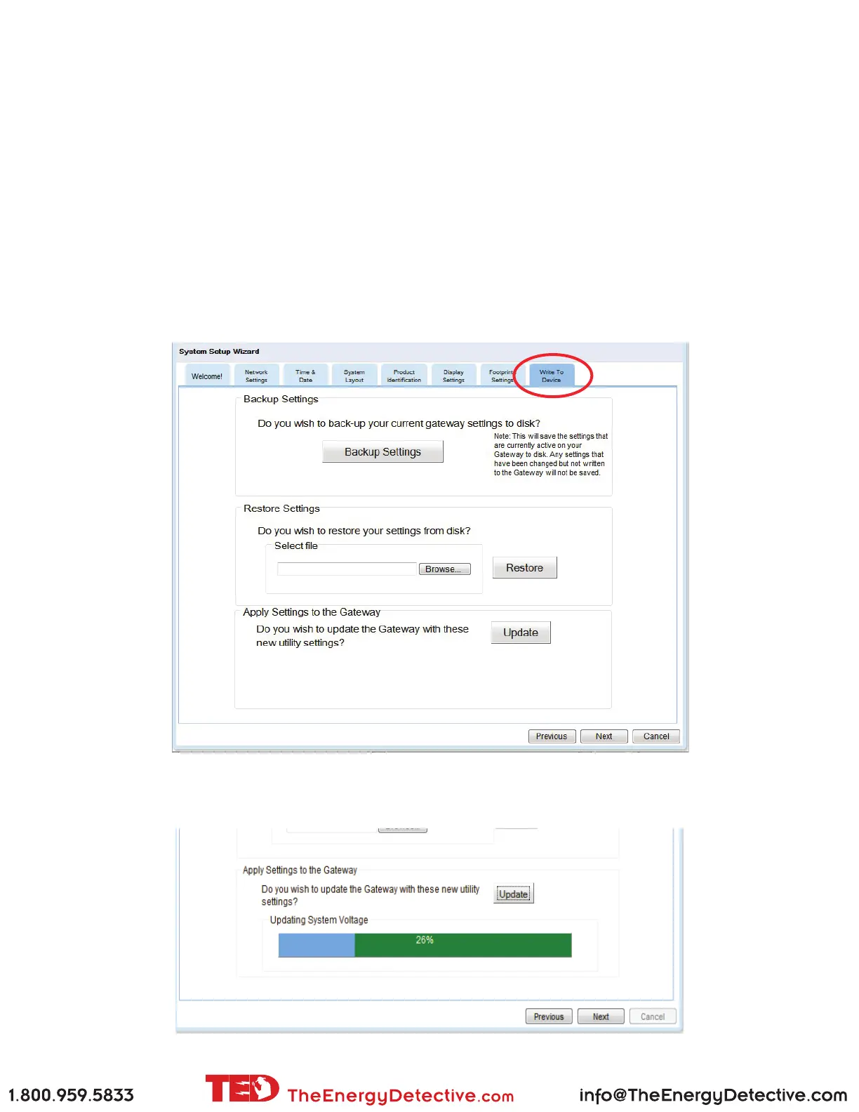 Se usa esta función cada vez que hace un cambio al sistema TED5000. Así se actualizan los cambios que Ud.