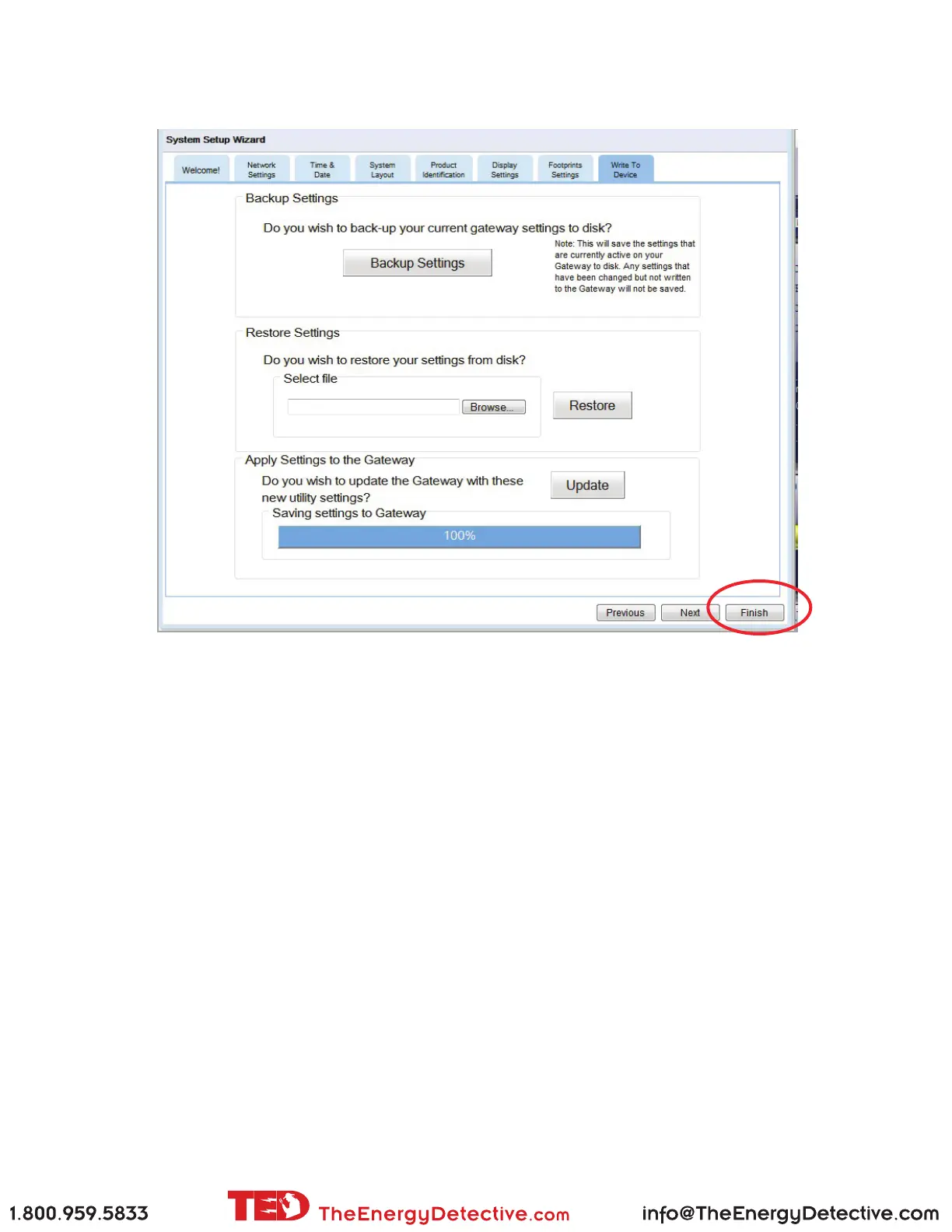 Espere que la barra de progreso llegue a 100% y entonces Presione “Finish” (terminar). Entonces Footprints se