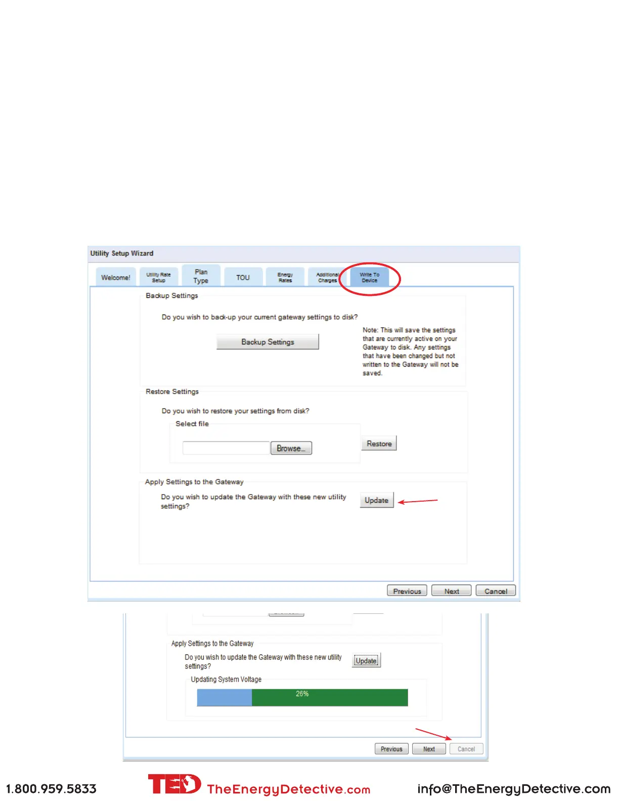 hace y se los guarda al Gateway. Presione UPDATE (Actualizar)