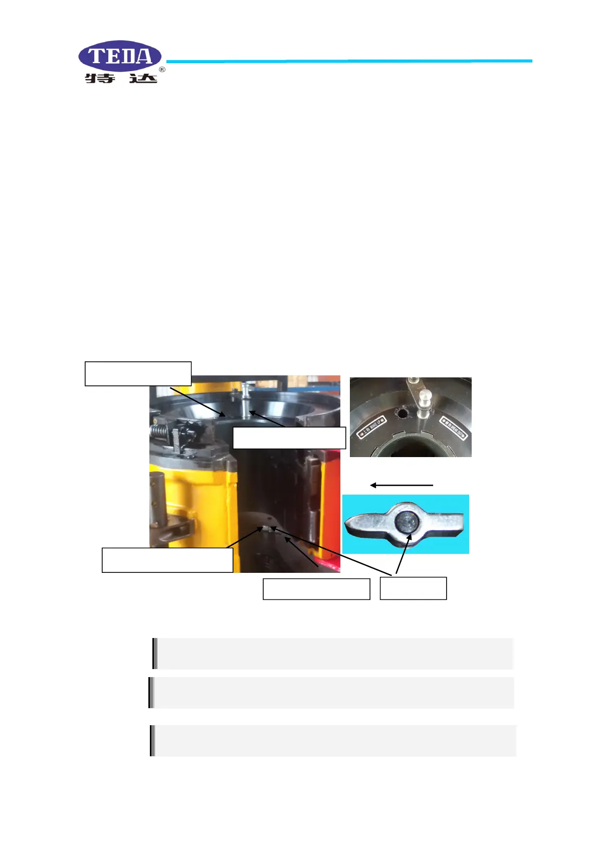 □ Push the tong tail to make the tong turn around the rotating center, tighten the