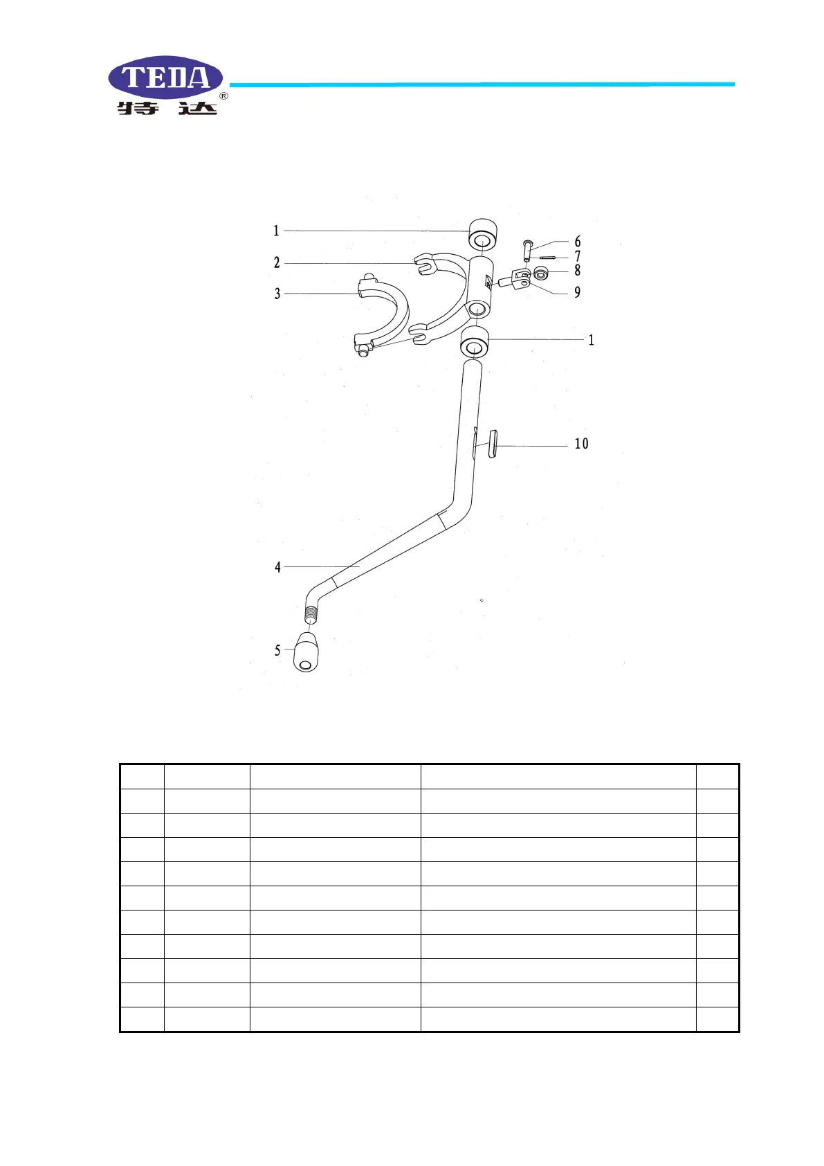 10.7 Gear shifting assembly and parts list (Fig.10.7, Table 10.7)