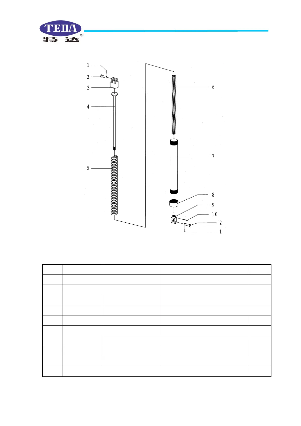 Table 10.14 Spring lifting bucket parts list