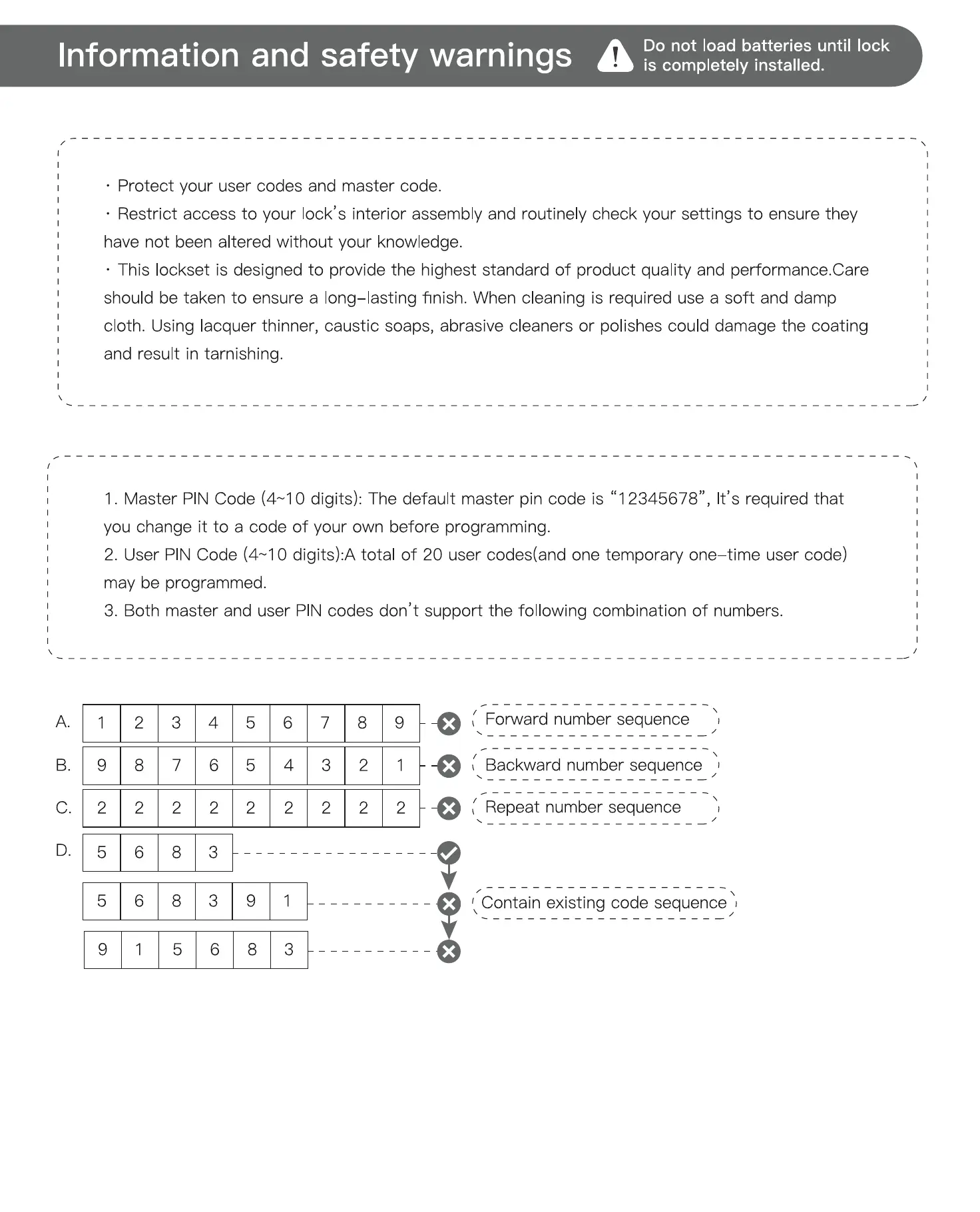 • Protect your user codes and master code.