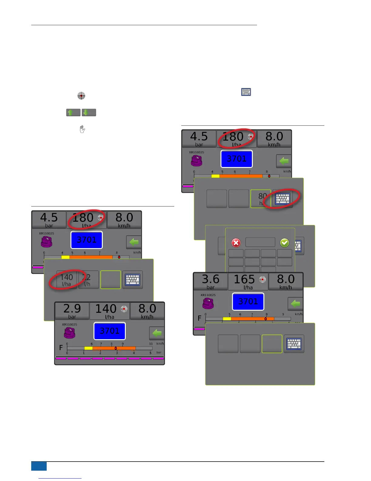 ►Preset target application rates options menu – denes the