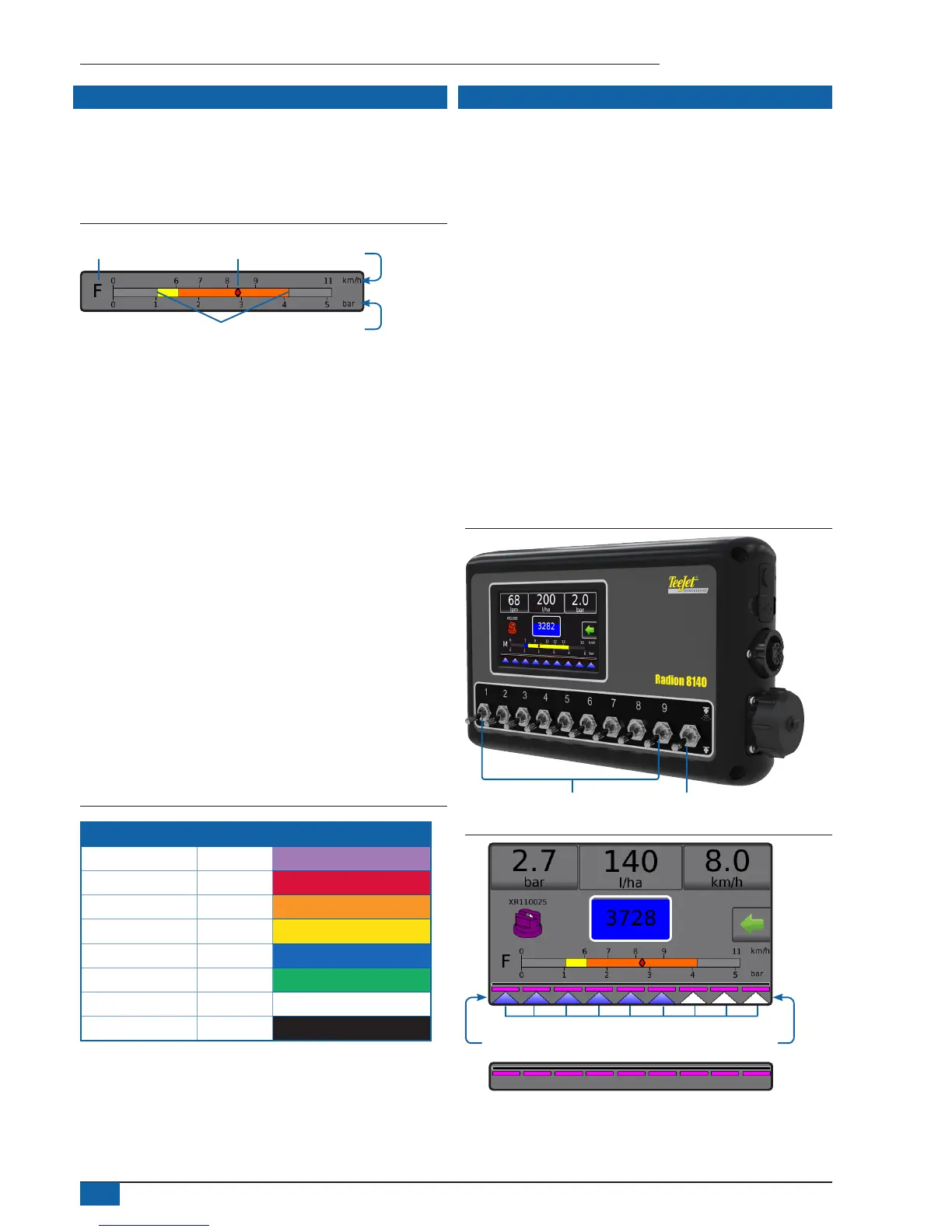 ◄Section on, master switch on – spray is blue