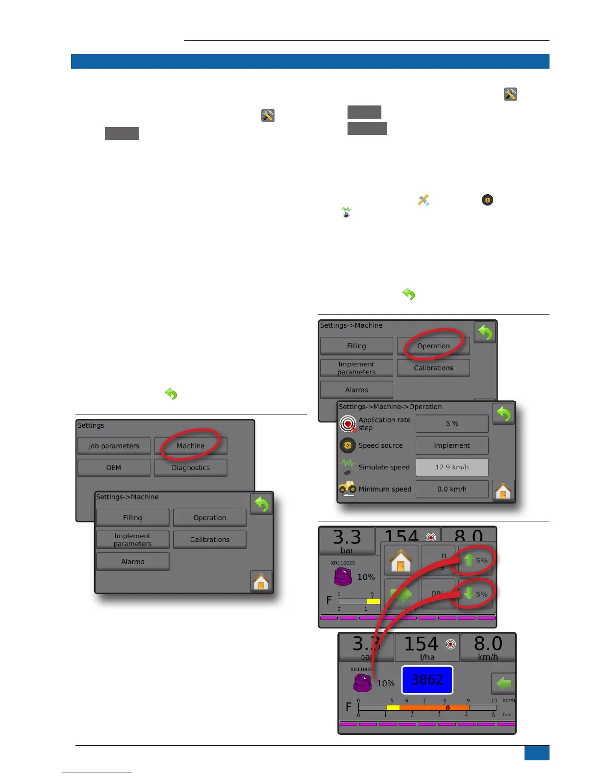 Figure 11: Application rate step on Operation screen