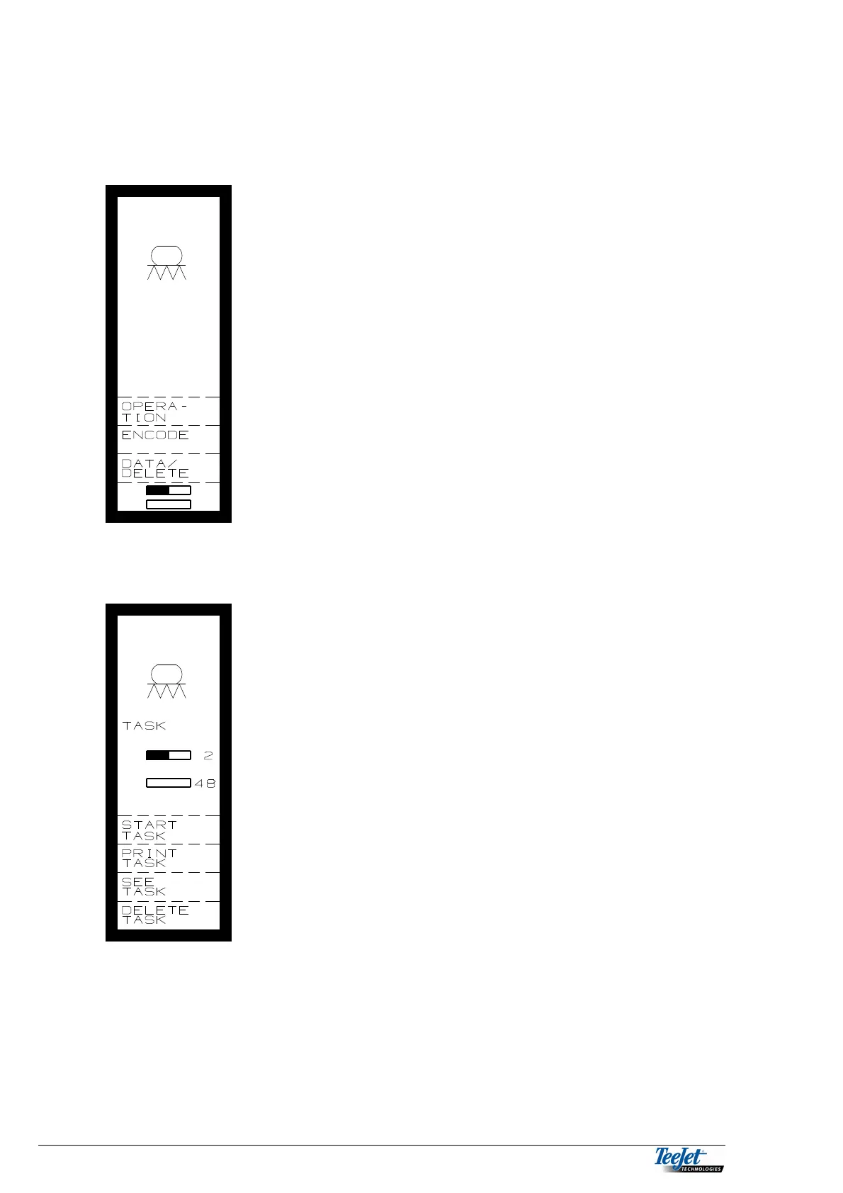 Pressing the “Start Task” function key, displays the