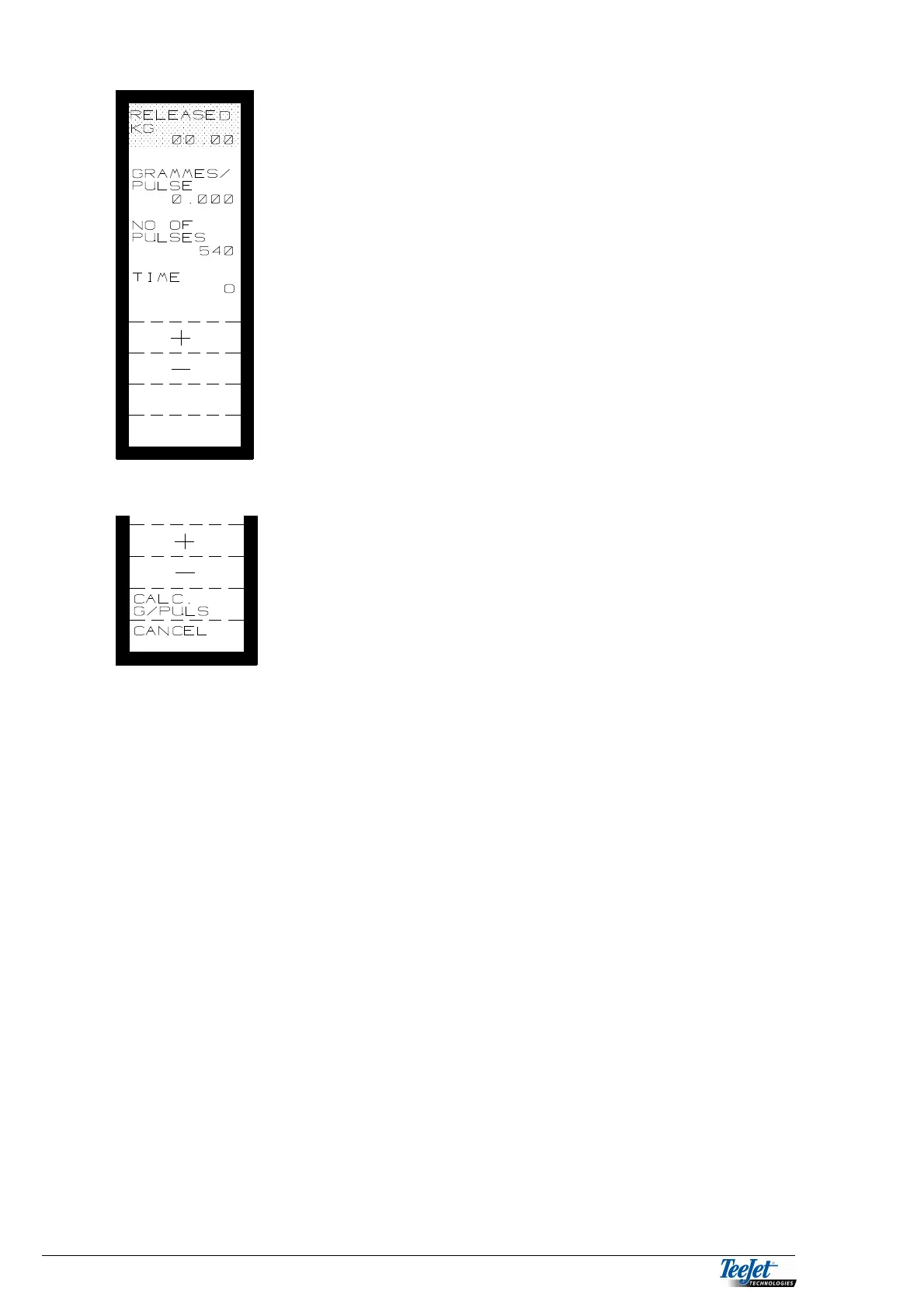 per pulse is incorrect then press “CANCEL” and a new calibration test must
