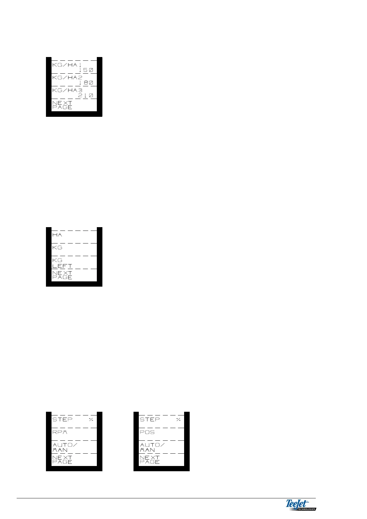 Pressing one of these keys displays the encoded required application rate. Not