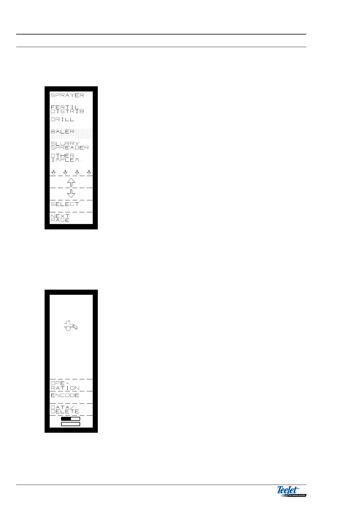 Select baler from the main menu as follows: