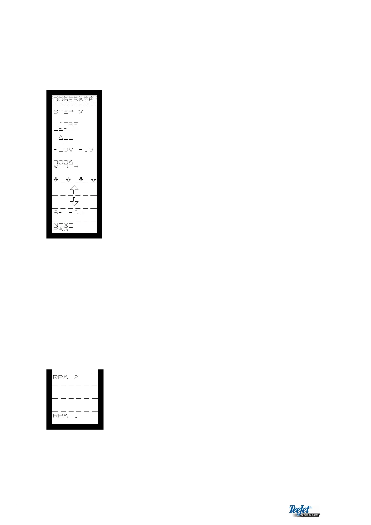 TeeJet 5000 can display the shaft speed for another axle instead of KG metering.