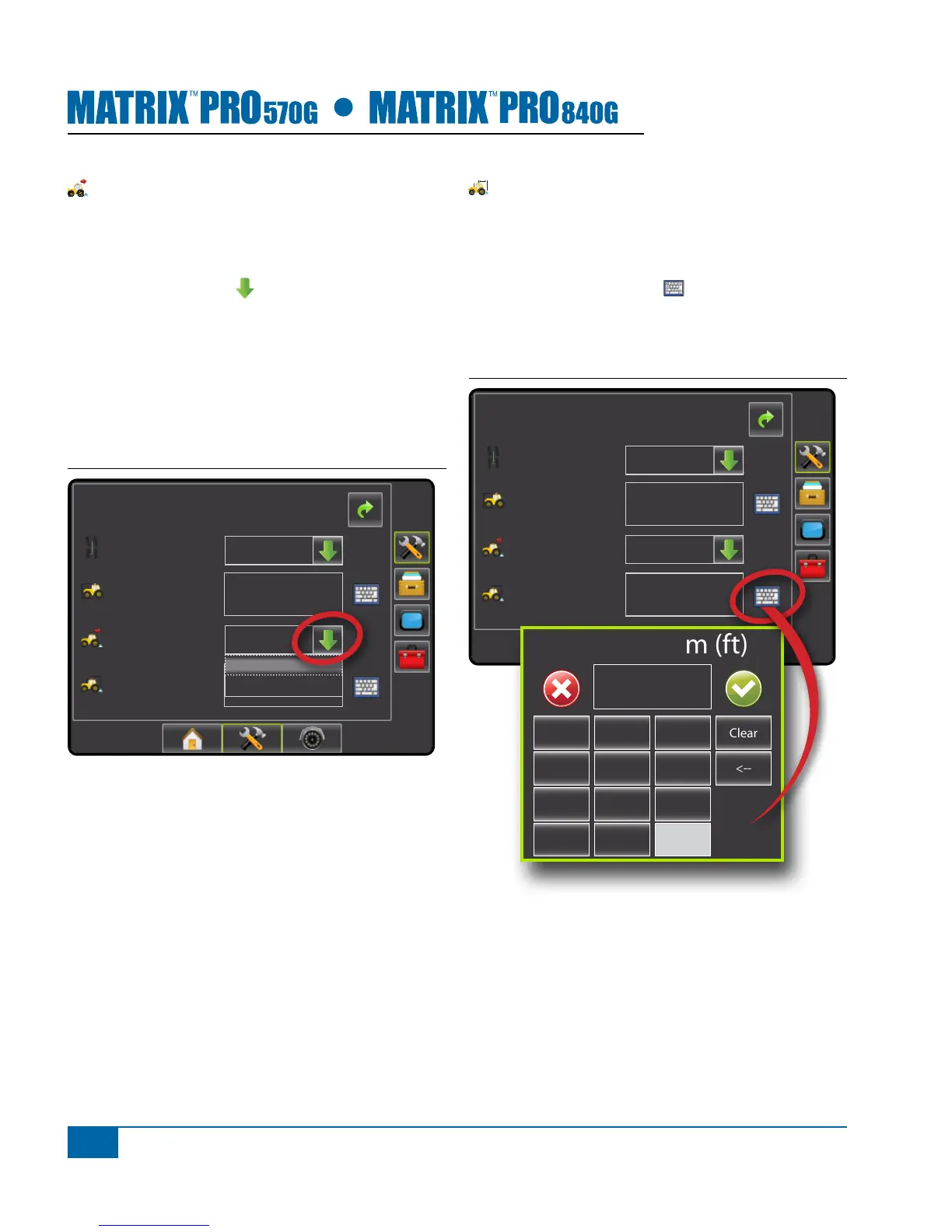 2. Use the entry screen to establish the distance from