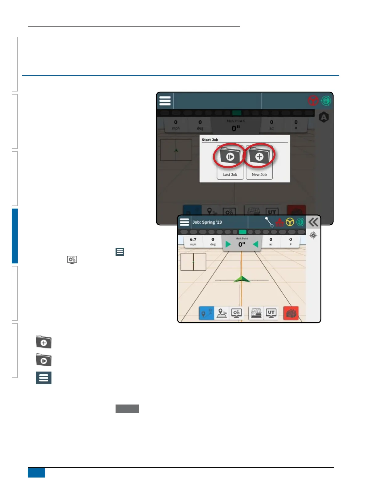 Use the Start Job menu to start a new job or continue