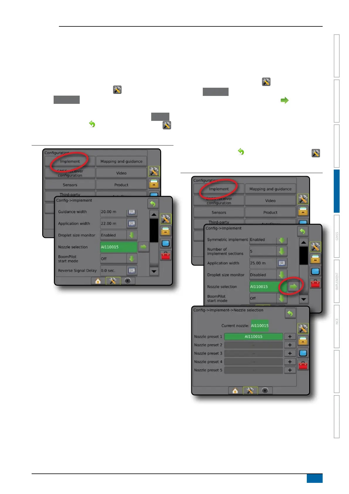 ►Nozzle preset 1-5 – selects up to ve (5) nozzles for quick