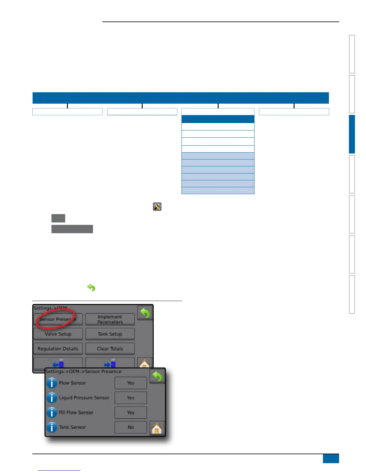 Sensor Presence establishes sensors for Flow, Liquid Pressure, Fill Flow and the Tank. If the tted sensors are not registered, the sensor