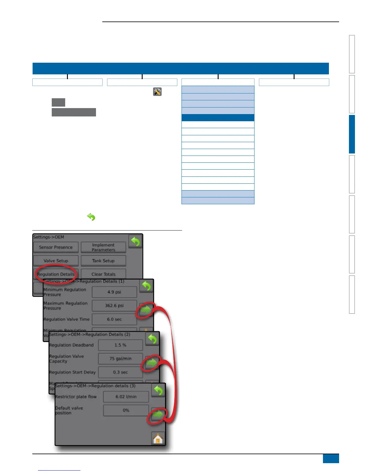 Regulation Details adjusts regulation valve controls including establishing the following: minimum and maximum pressure, valve time,