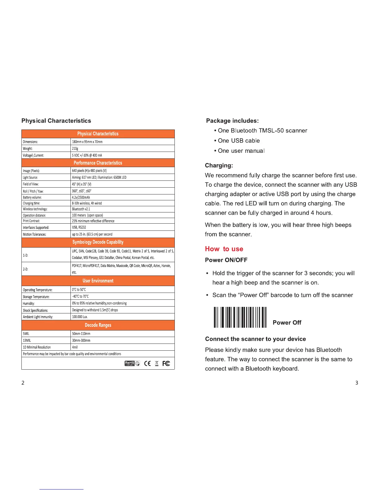 Teemi TMSL-50 - Physical Characteristics; Charging; How to Use