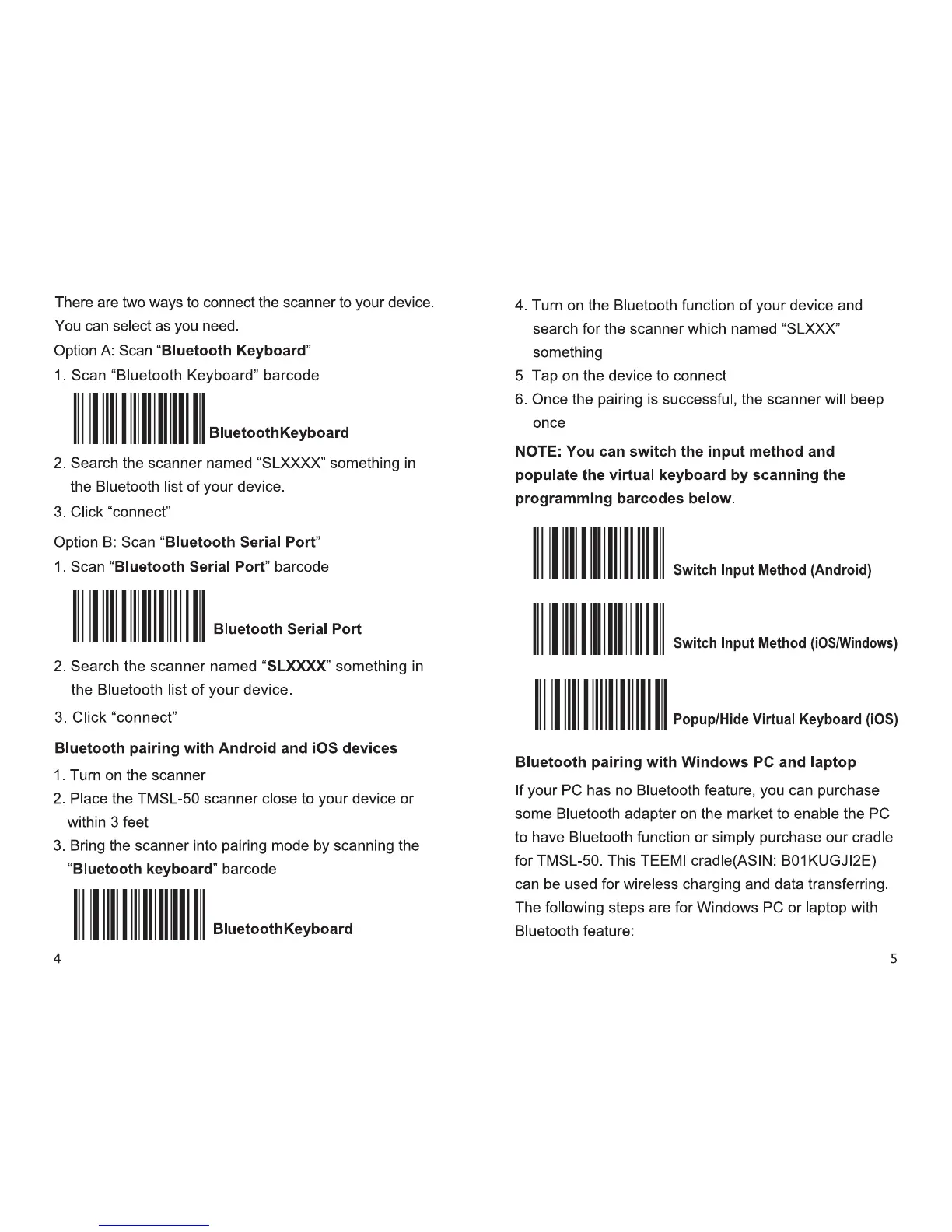 Teemi TMSL-50 - Bluetooth Pairing; Bluetooth Pairing with Android and iOS Devices; Bluetooth Pairing with Windows PC and Laptop