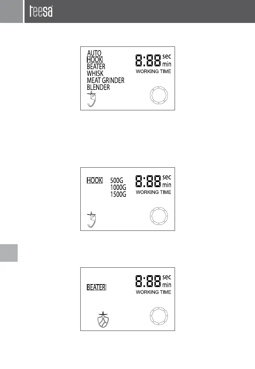 Possible quantity of dough: 500 g, 1000 g or 1500 g. Press SELECT to choose desired quantity,