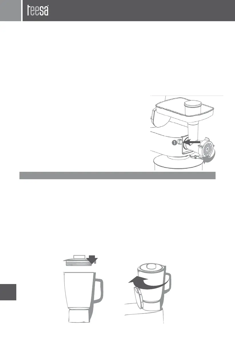 7. Priložte zložený mäsomlynček k otvoru na čelnom paneli hlavice, mierne naklonený