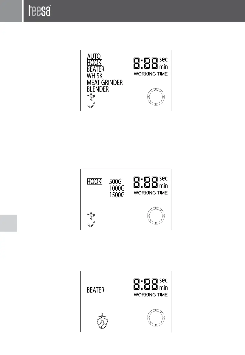 • HOOK (Knethaken - Modus zum kneten von Teig)