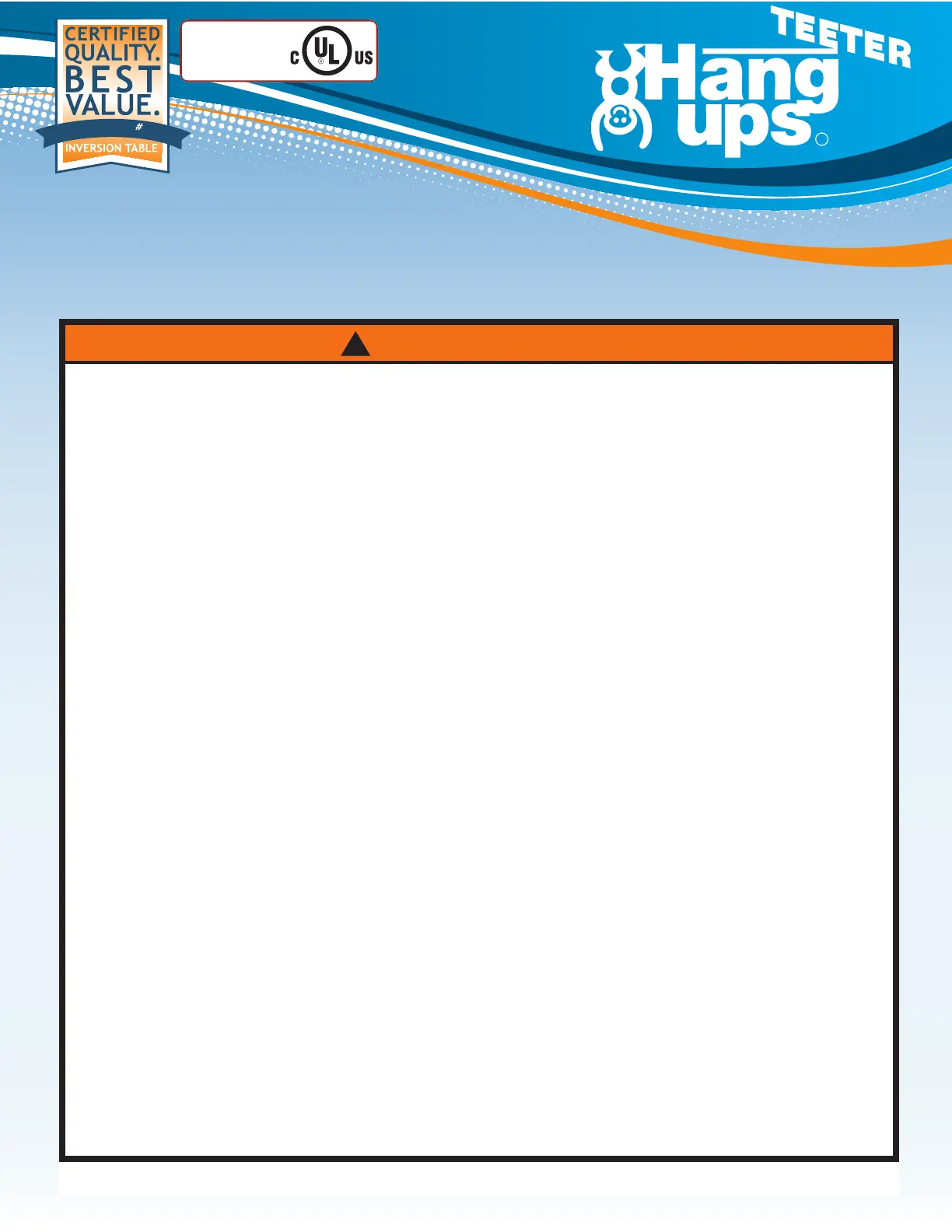 le matériel avant d’utiliser la table d’inversion. Vous êtes responsable de vous familiariser avec l’utilisation correcte de cet appareil