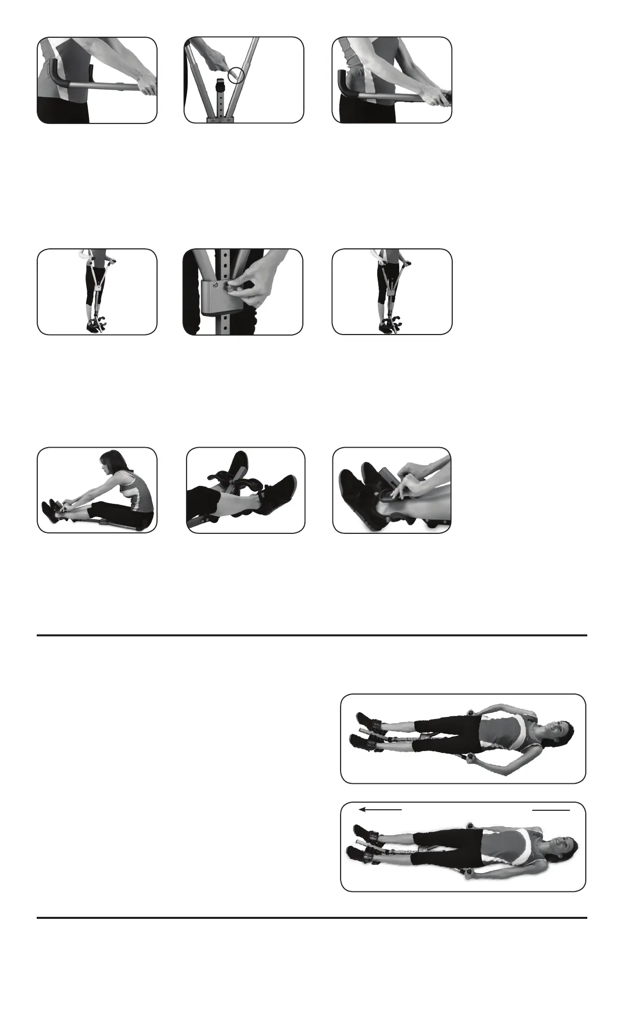 Note: If the Handles are set too long (not snug around hips), it will be difcult to obtain leverage for an effective stretch.
