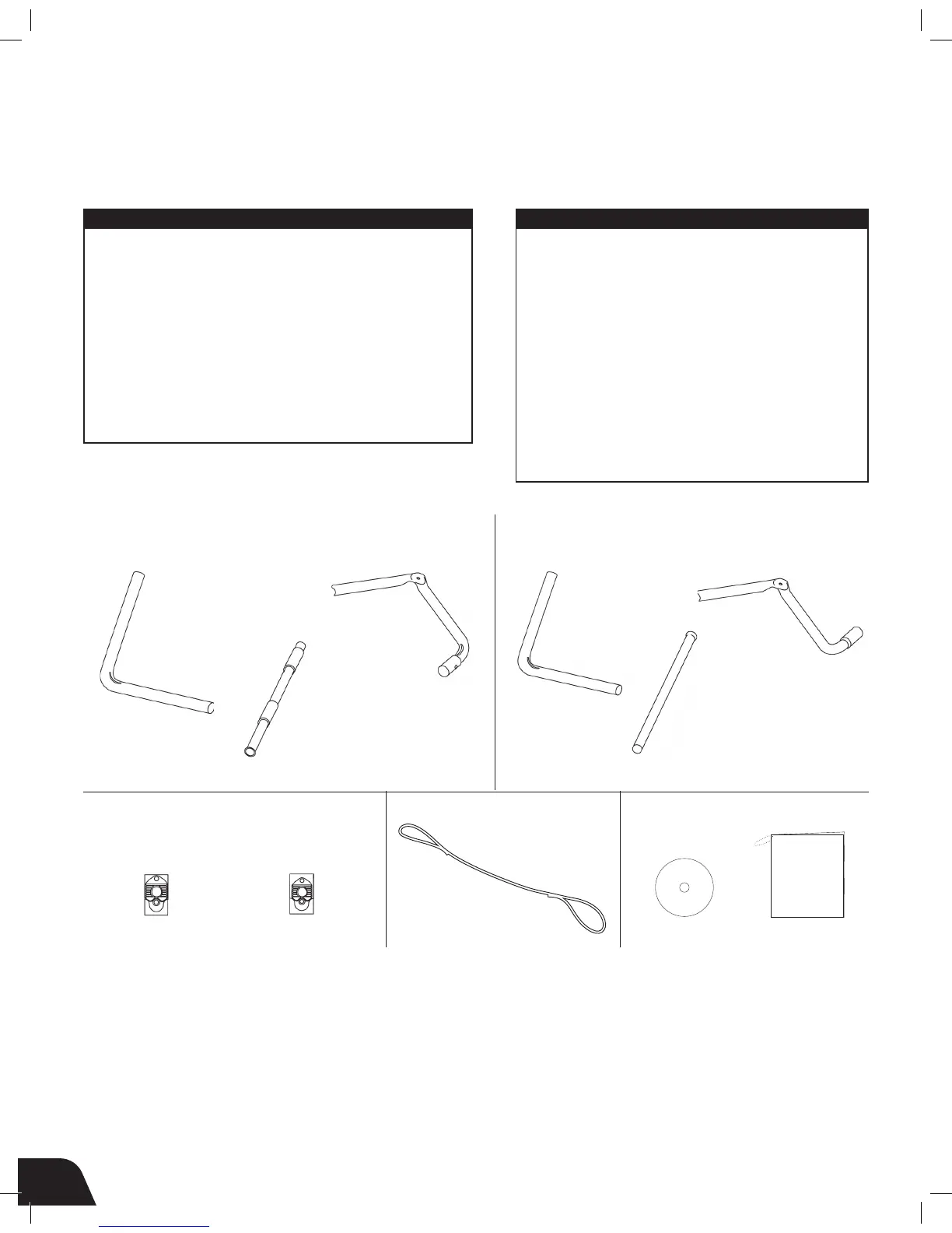 Items not shown to scale. Hardware drawings located on the insert inside each Hardware Kit.