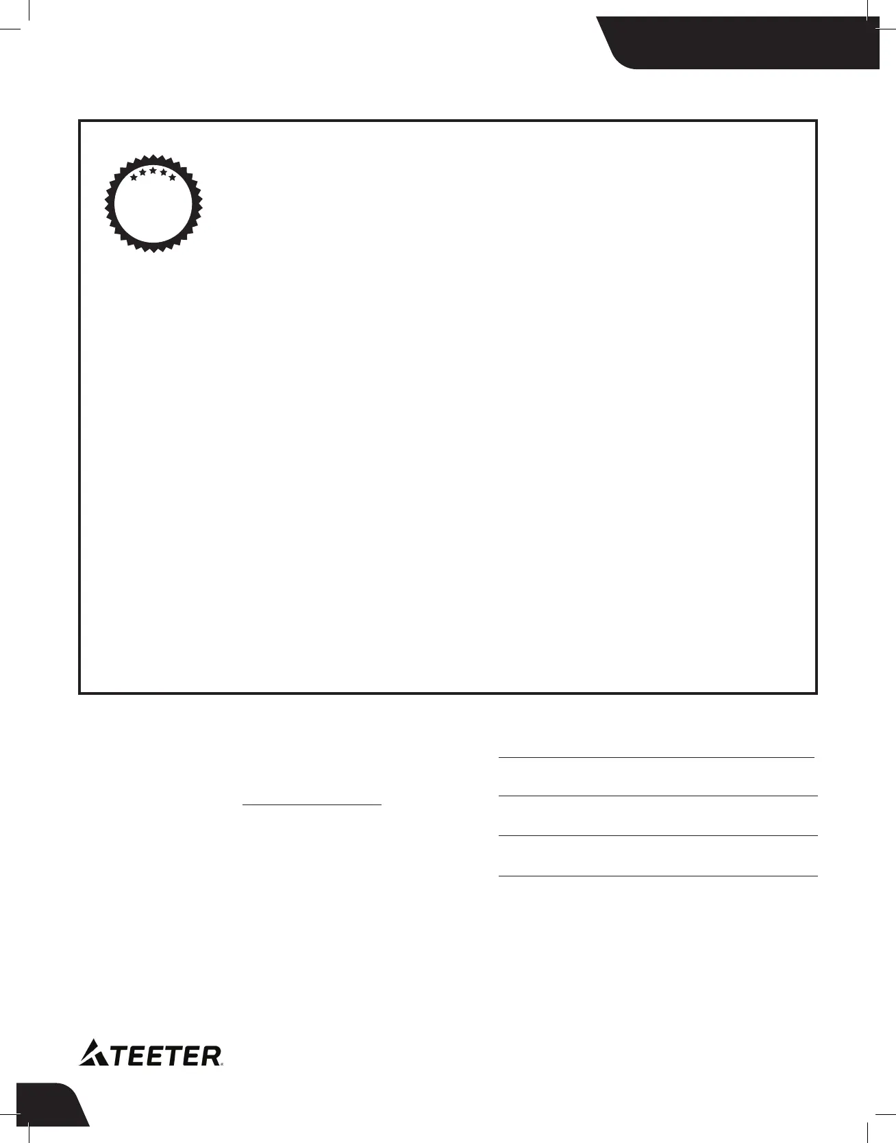 materials, workmanship, fabrics and padding. Teeter will repair or replace any such defect and will