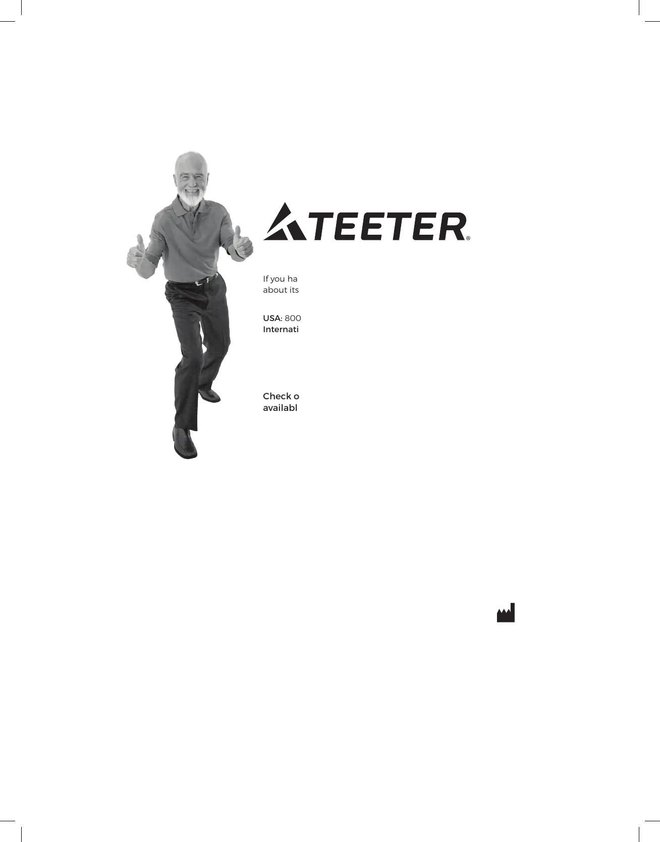 U.S. and Foreign Patents Apply. Teeter and Teeter logo are registered trademarks of Teeter. Specifications subject to change without notice.