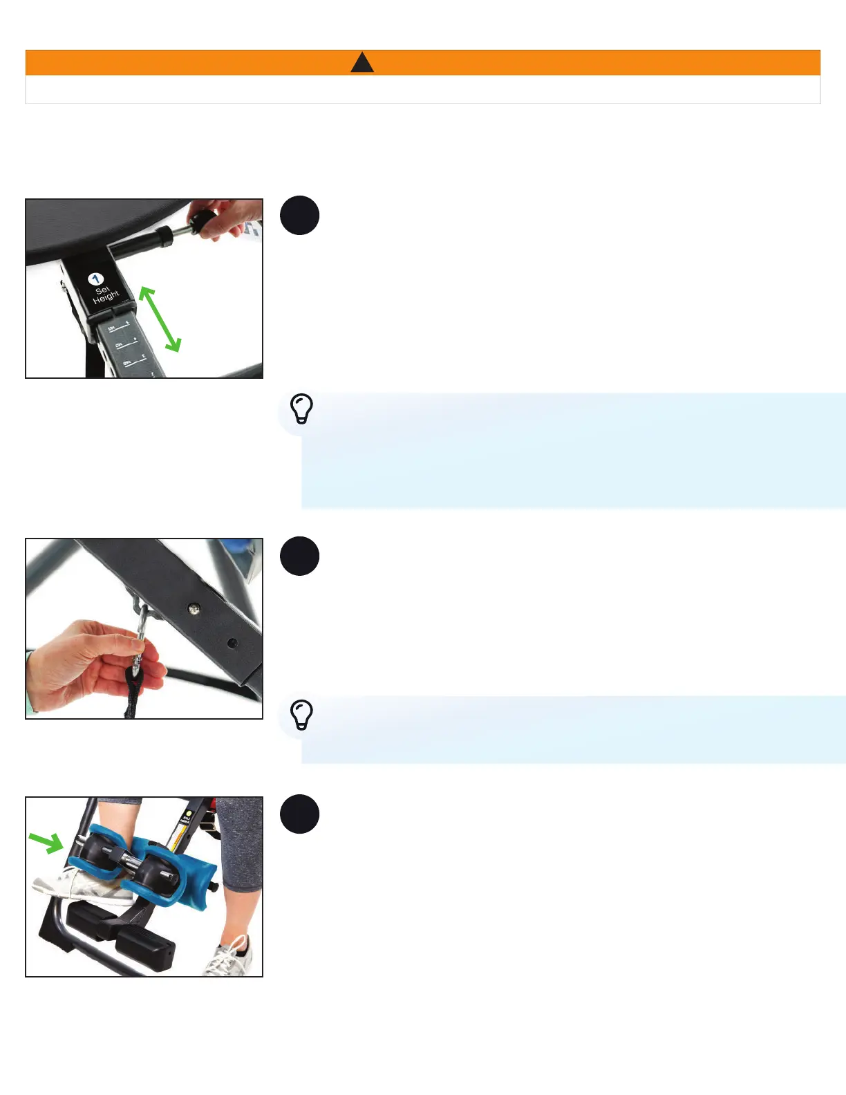 Failure to set these adjustments correctly may result in too rapid inversion or difficulty returning upright.