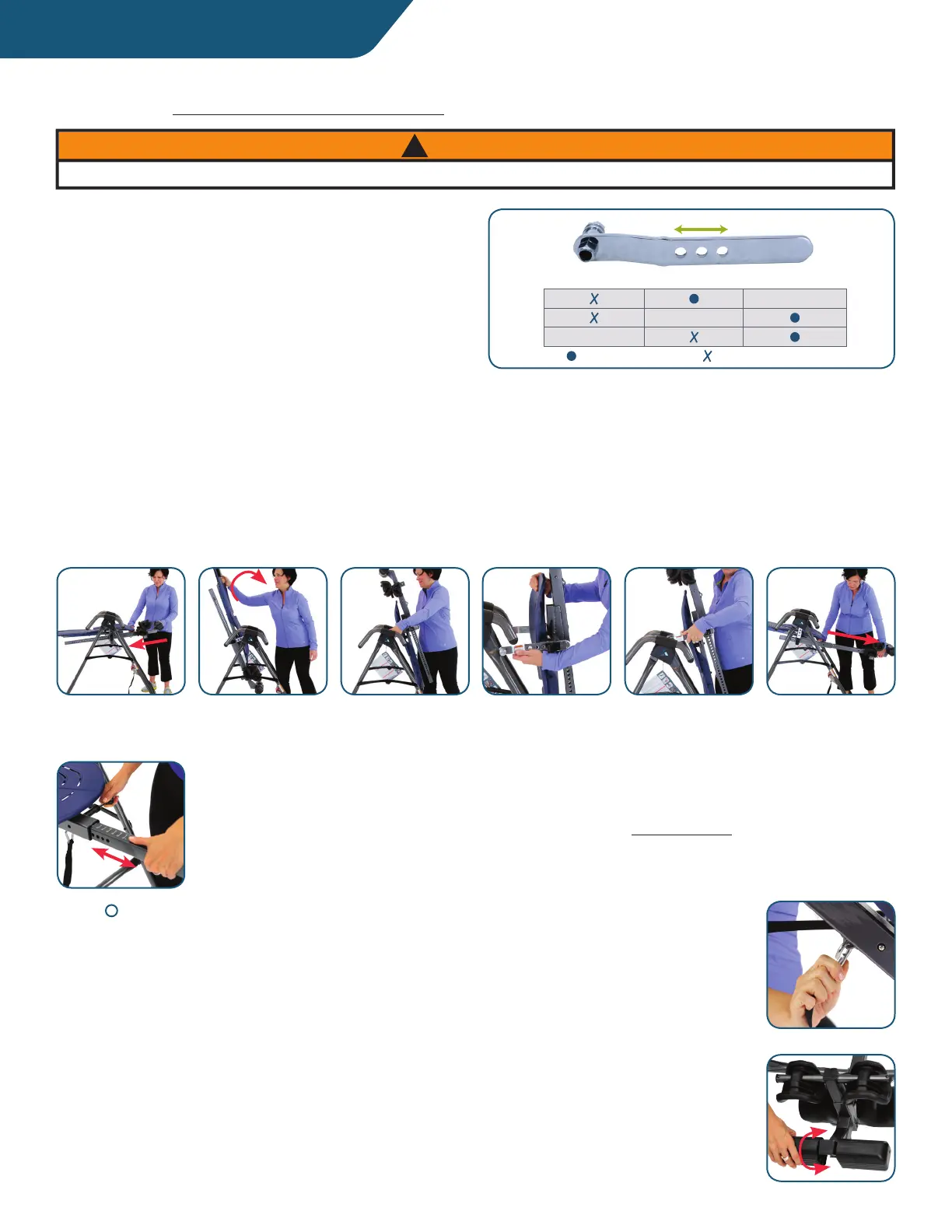 your ideal settings. Every time prior to using the inversion table, make sure the User Settings are adjusted to your personal settings.