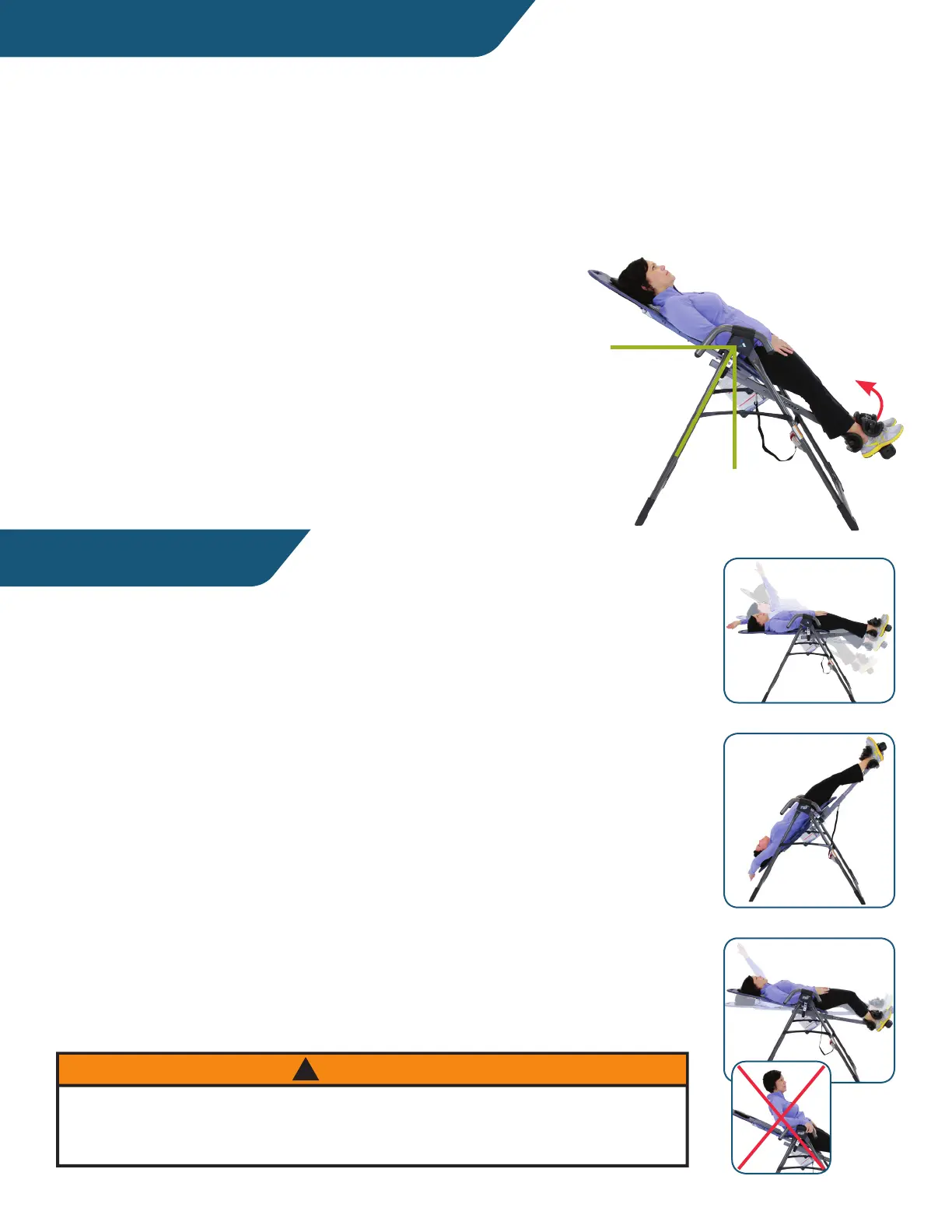 When adjusted properly, you will control the rotation of the inversion table by simply shifting your body weight by moving your arms or