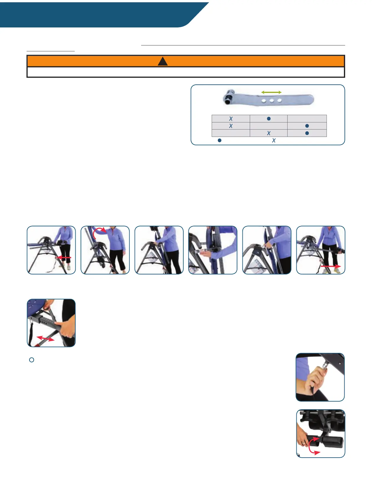 Failure to set these adjustments correctly may result in too rapid inversion or difficulty returning upright.