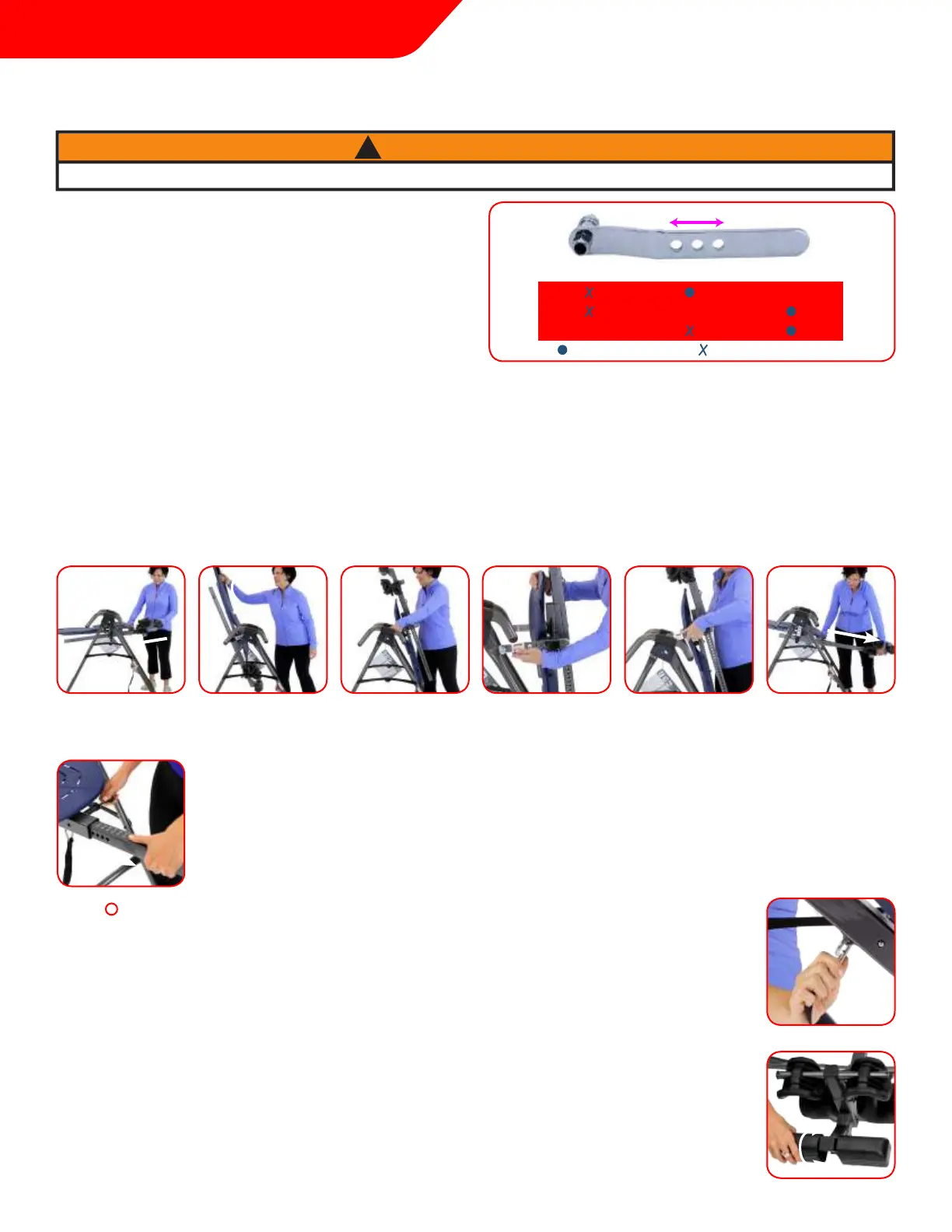 fixation des chevilles et le haut du pied). Cela réduira le glissement du corps sur le Dossier de la table au cours de l’inversion,